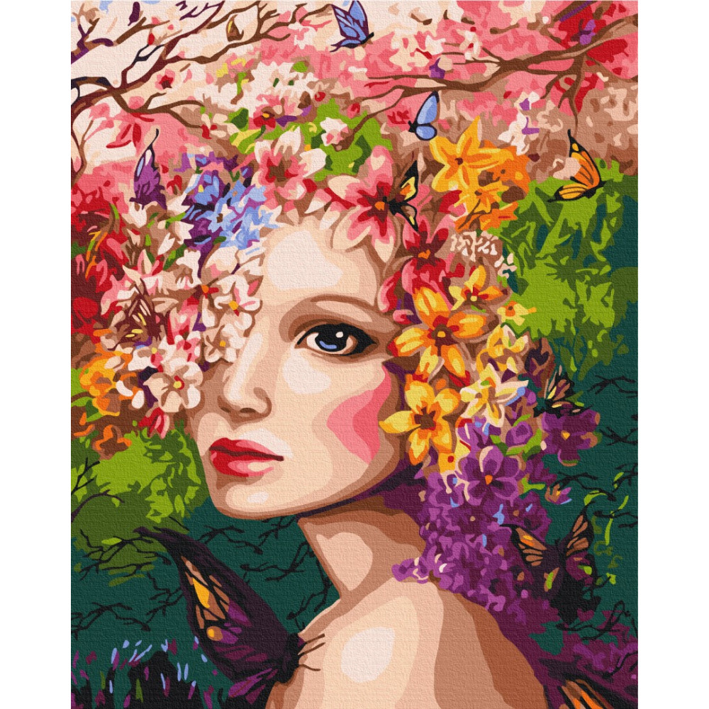 бполотно на лляній основі та дерев'яному підрамнику з нанесеною пронумерованою схемою майбутньої картини. Всі сегменти додатково пофарбовані в тон кольорів, якими буде зафарбовувати полотно