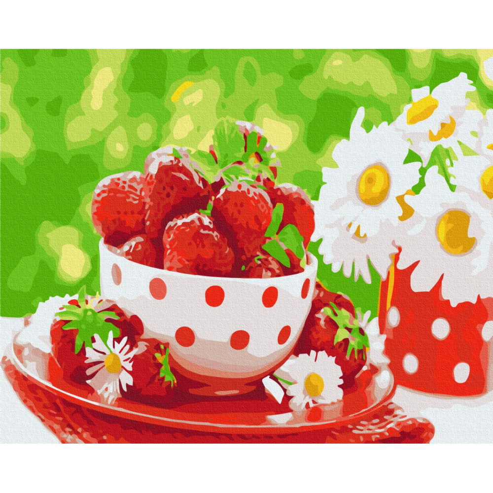 бполотно на лляній основі та дерев'яному підрамнику з нанесеною пронумерованою схемою майбутньої картини. Всі сегменти додатково пофарбовані в тон кольорів, якими буде зафарбовувати полотно