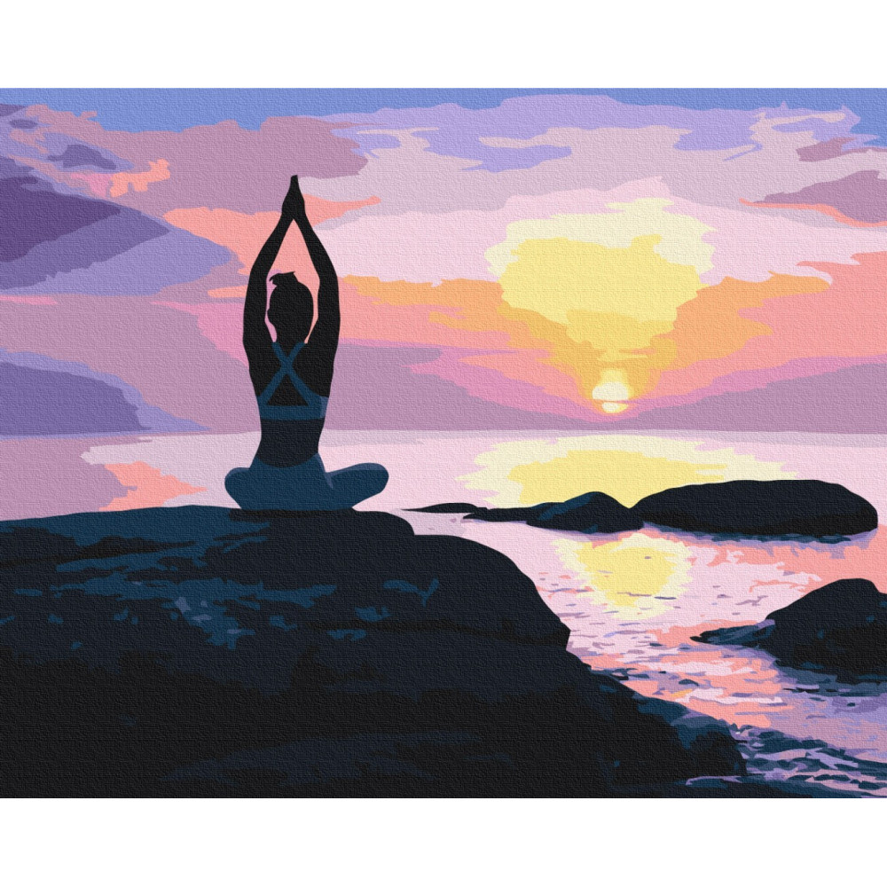 бполотно на лляній основі та дерев'яному підрамнику з нанесеною пронумерованою схемою майбутньої картини. Всі сегменти додатково пофарбовані в тон кольорів, якими буде зафарбовувати полотно