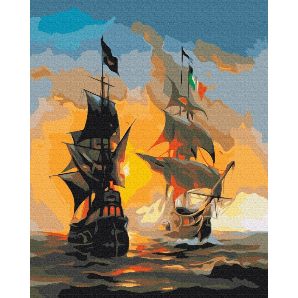 бполотно на лляній основі та дерев'яному підрамнику з нанесеною пронумерованою схемою майбутньої картини. Всі сегменти додатково пофарбовані в тон кольорів, якими буде зафарбовувати полотно