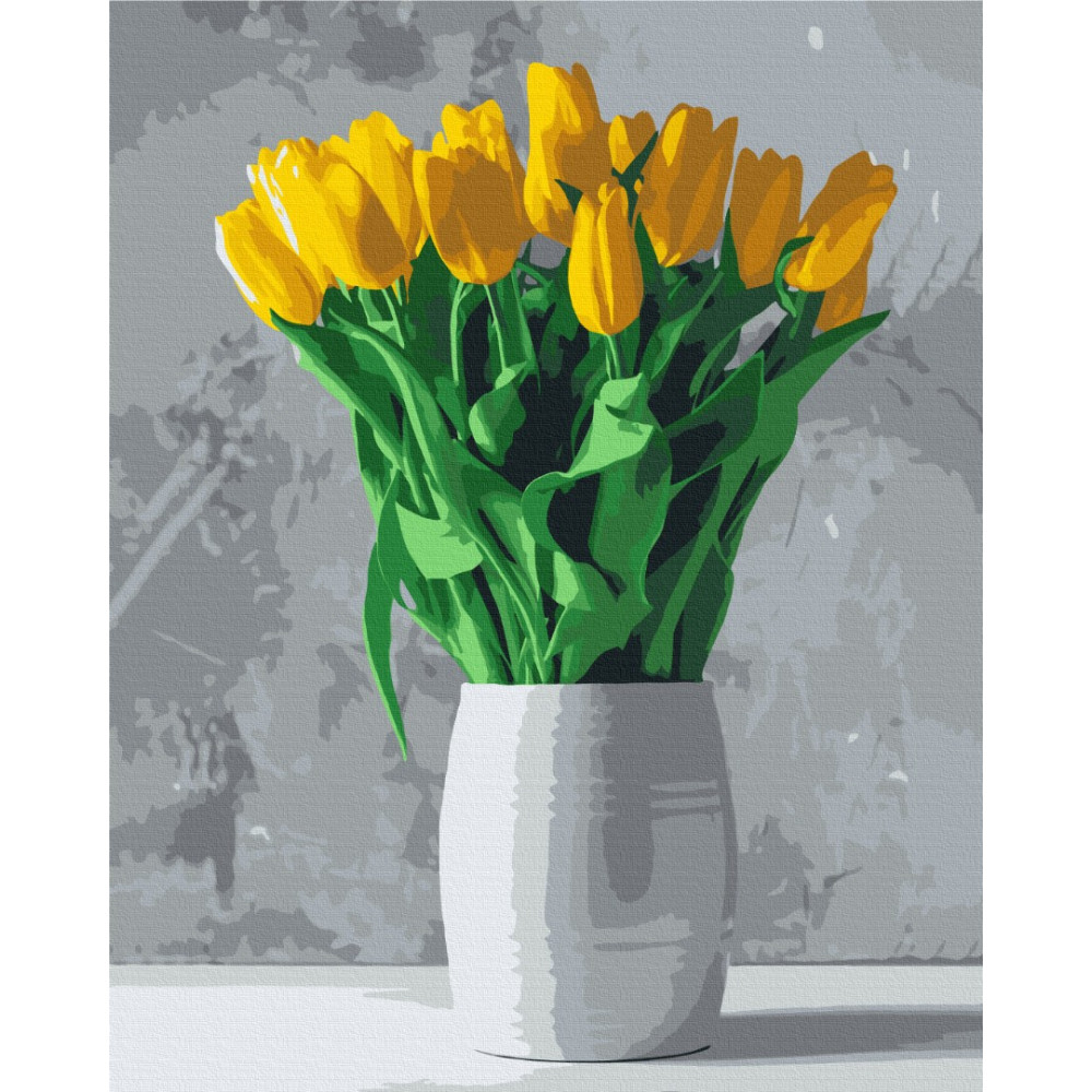 бполотно на лляній основі та дерев'яному підрамнику з нанесеною пронумерованою схемою майбутньої картини. Всі сегменти додатково пофарбовані в тон кольорів, якими буде зафарбовувати полотно