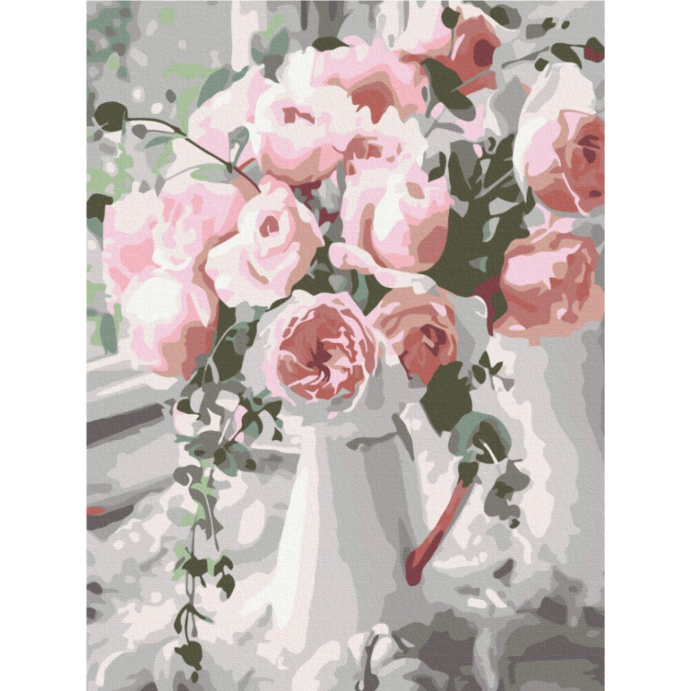 бполотно на лляній основі та дерев'яному підрамнику з нанесеною пронумерованою схемою майбутньої картини. Всі сегменти додатково пофарбовані в тон кольорів, якими буде зафарбовувати полотно