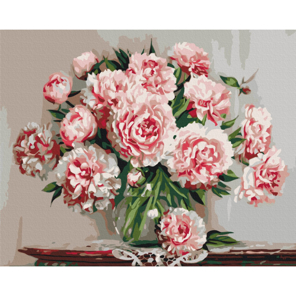 бполотно на лляній основі та дерев'яному підрамнику з нанесеною пронумерованою схемою майбутньої картини. Всі сегменти додатково пофарбовані в тон кольорів, якими буде зафарбовувати полотно