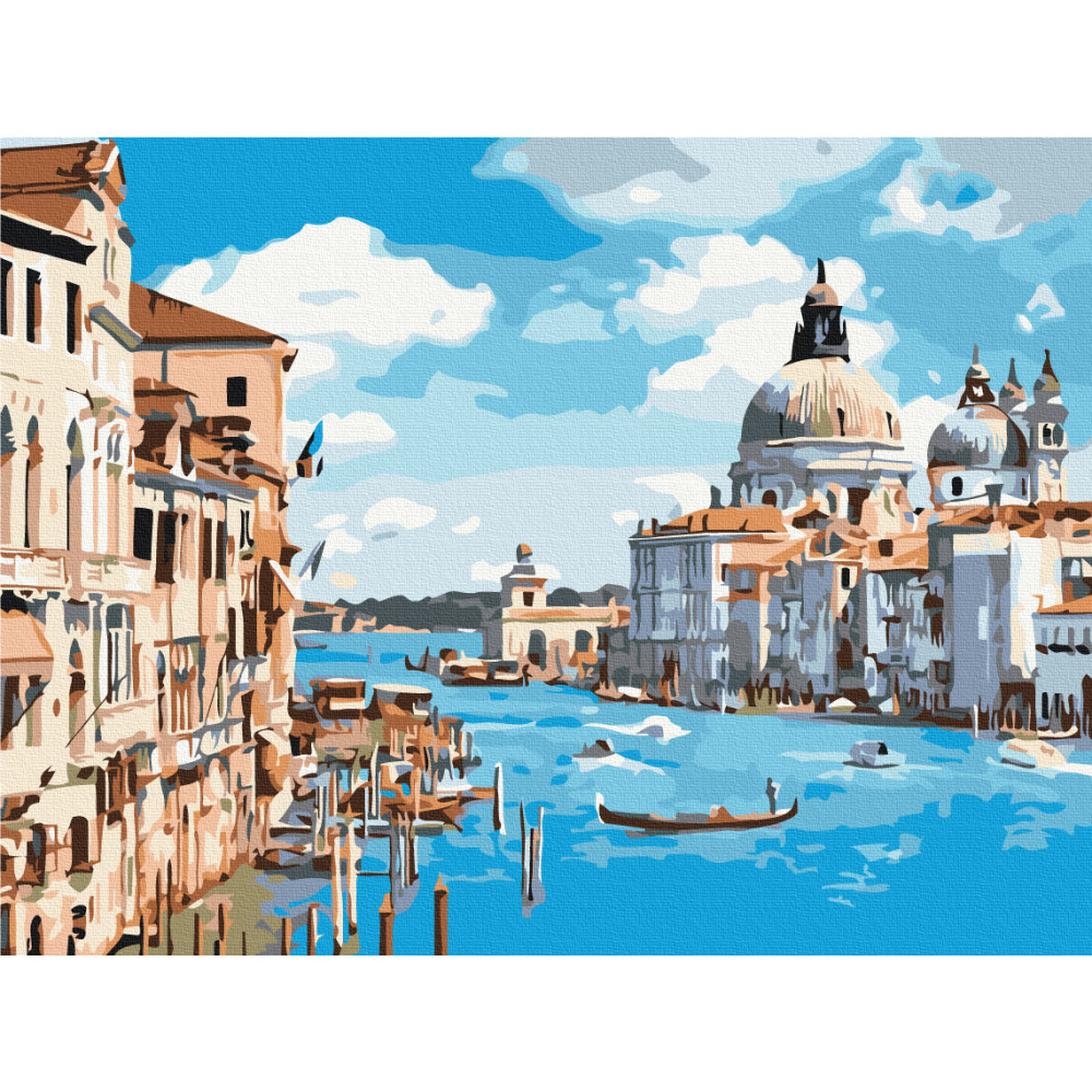 бполотно на лляній основі та дерев'яному підрамнику з нанесеною пронумерованою схемою майбутньої картини. Всі сегменти додатково пофарбовані в тон кольорів, якими буде зафарбовувати полотно