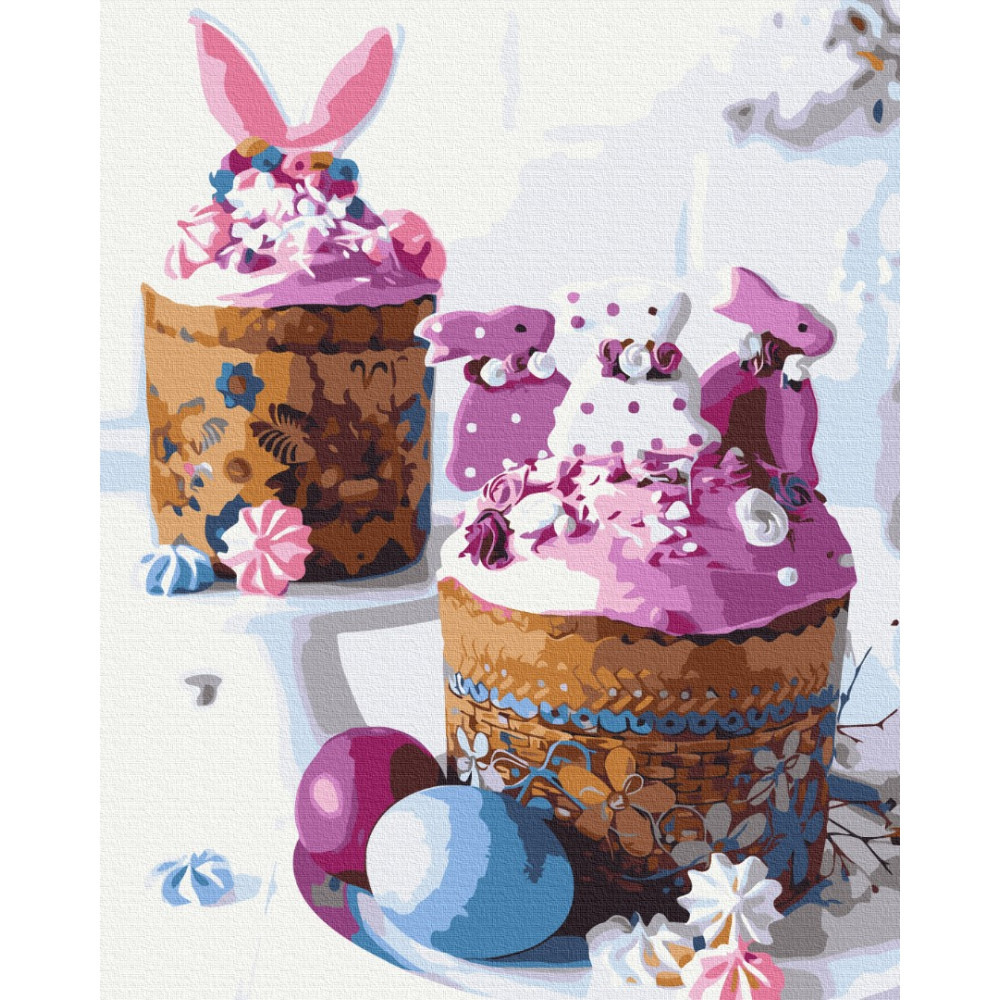 бполотно на лляній основі та дерев'яному підрамнику з нанесеною пронумерованою схемою майбутньої картини. Всі сегменти додатково пофарбовані в тон кольорів, якими буде зафарбовувати полотно