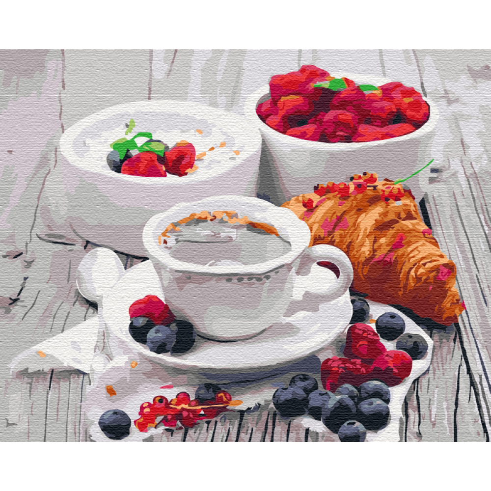 бполотно на лляній основі та дерев'яному підрамнику з нанесеною пронумерованою схемою майбутньої картини. Всі сегменти додатково пофарбовані в тон кольорів, якими буде зафарбовувати полотно