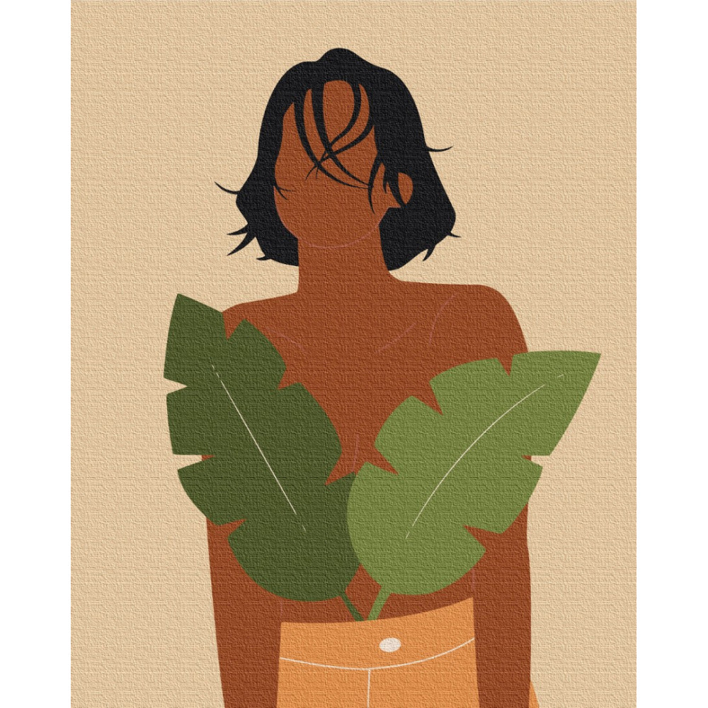 бполотно на лляній основі та дерев'яному підрамнику з нанесеною пронумерованою схемою майбутньої картини. Всі сегменти додатково пофарбовані в тон кольорів, якими буде зафарбовувати полотно