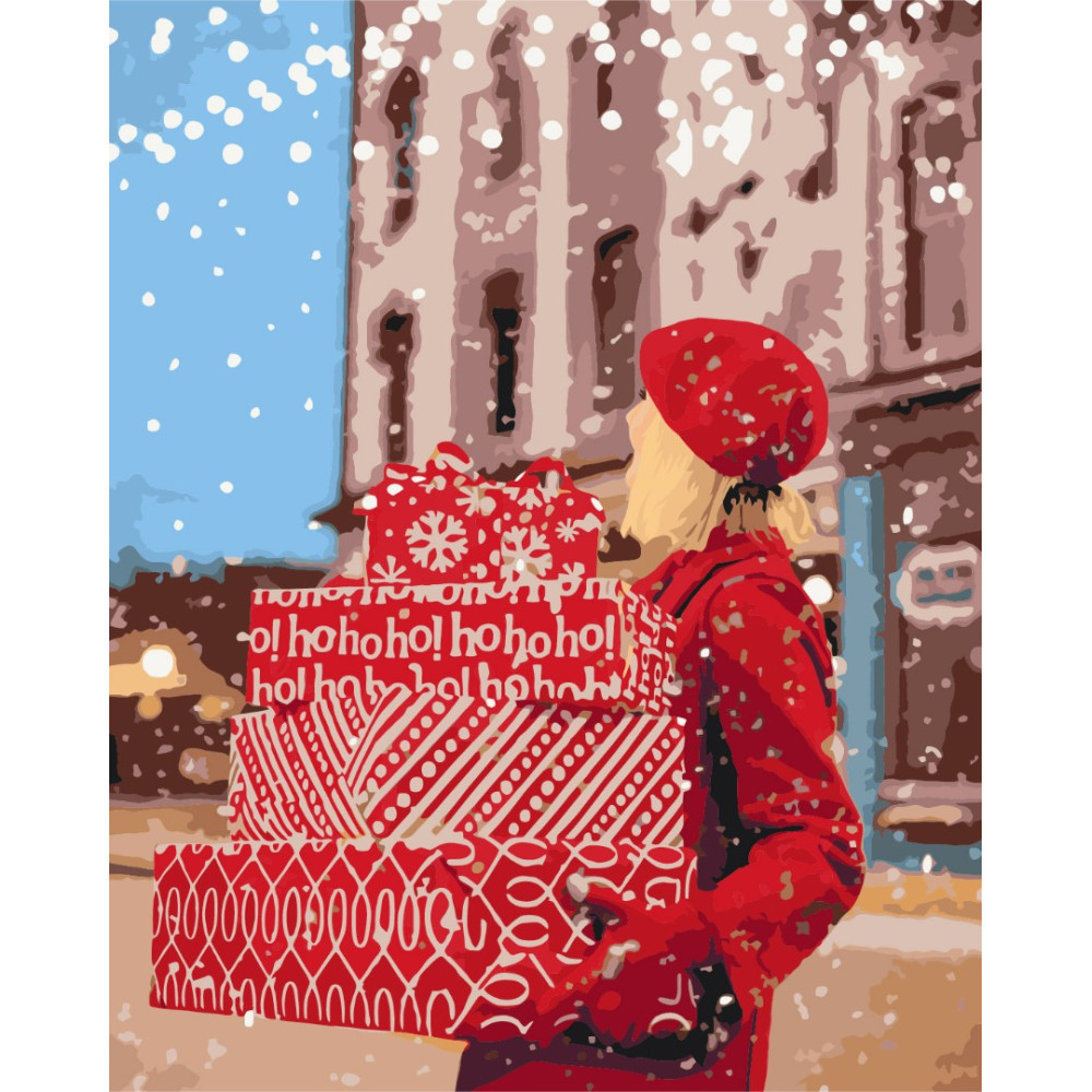 бполотно на лляній основі та дерев'яному підрамнику з нанесеною пронумерованою схемою майбутньої картини. Всі сегменти додатково пофарбовані в тон кольорів, якими буде зафарбовувати полотно