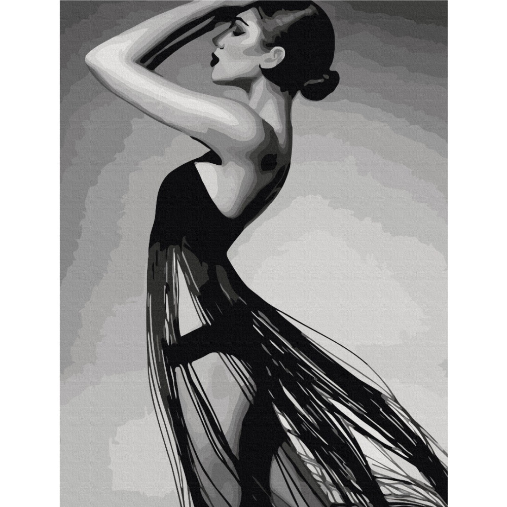 бполотно на лляній основі та дерев'яному підрамнику з нанесеною пронумерованою схемою майбутньої картини. Всі сегменти додатково пофарбовані в тон кольорів, якими буде зафарбовувати полотно