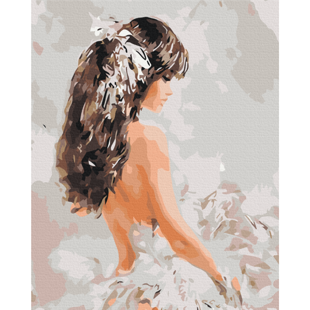 бполотно на лляній основі та дерев'яному підрамнику з нанесеною пронумерованою схемою майбутньої картини. Всі сегменти додатково пофарбовані в тон кольорів, якими буде зафарбовувати полотно