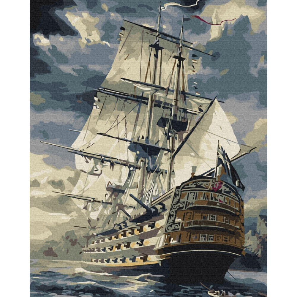 бполотно на лляній основі та дерев'яному підрамнику з нанесеною пронумерованою схемою майбутньої картини. Всі сегменти додатково пофарбовані в тон кольорів, якими буде зафарбовувати полотно