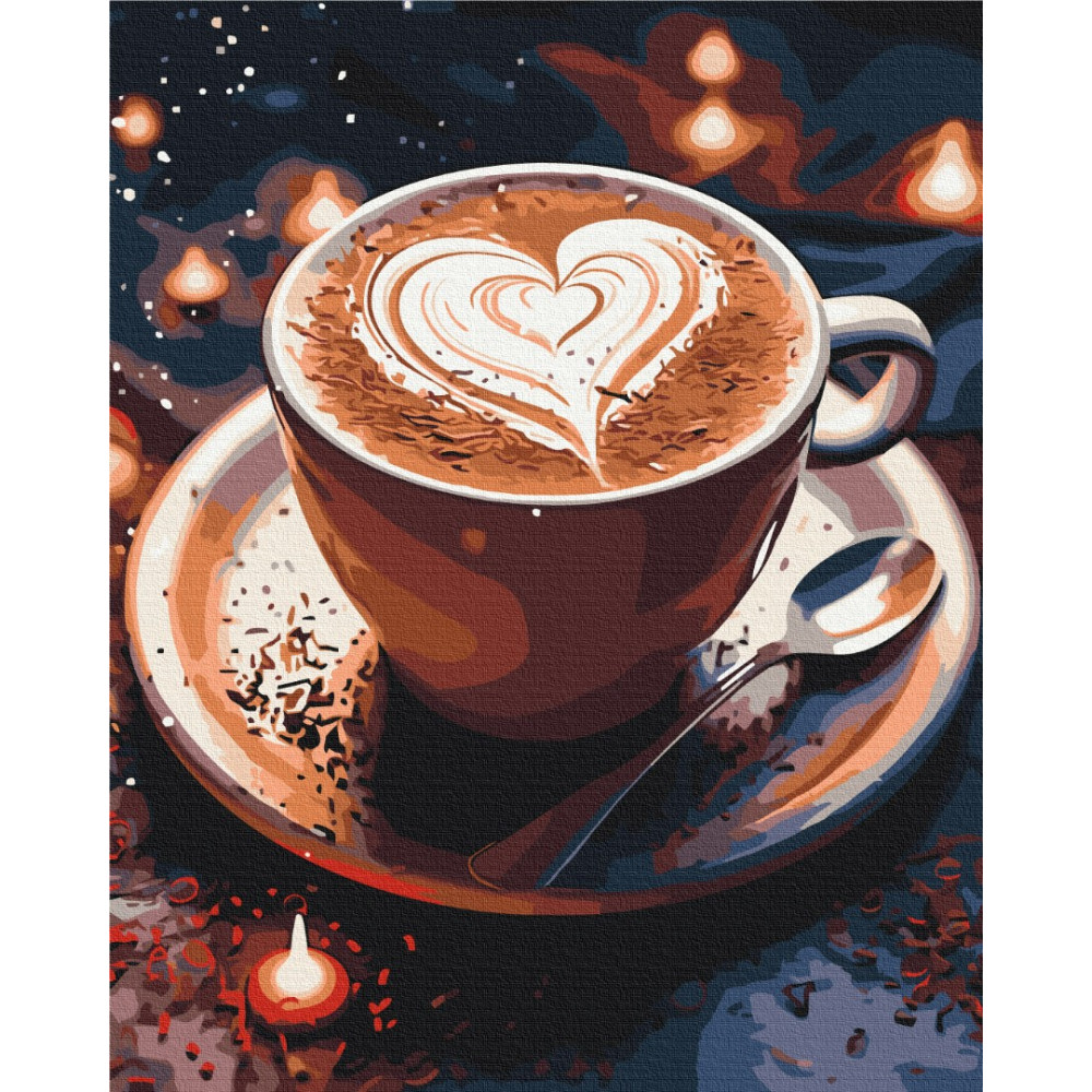 бполотно на лляній основі та дерев'яному підрамнику з нанесеною пронумерованою схемою майбутньої картини. Всі сегменти додатково пофарбовані в тон кольорів, якими буде зафарбовувати полотно