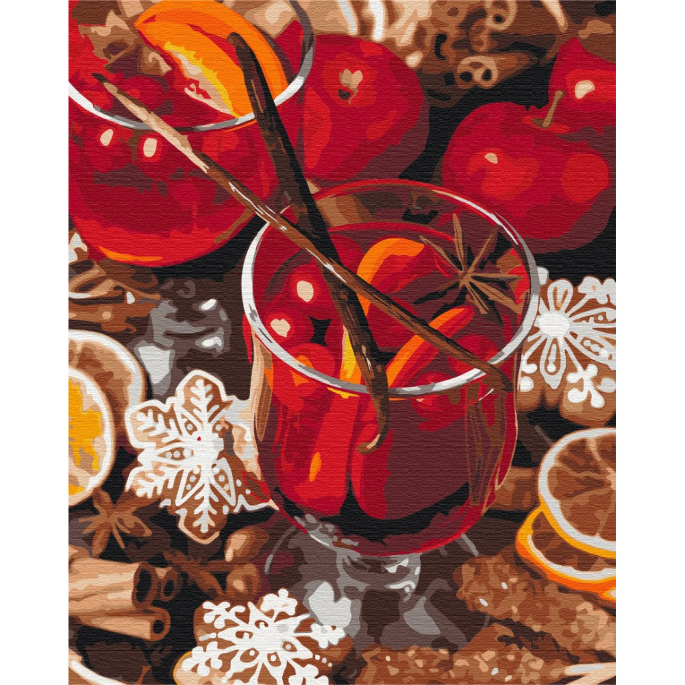 бполотно на лляній основі та дерев'яному підрамнику з нанесеною пронумерованою схемою майбутньої картини. Всі сегменти додатково пофарбовані в тон кольорів, якими буде зафарбовувати полотно