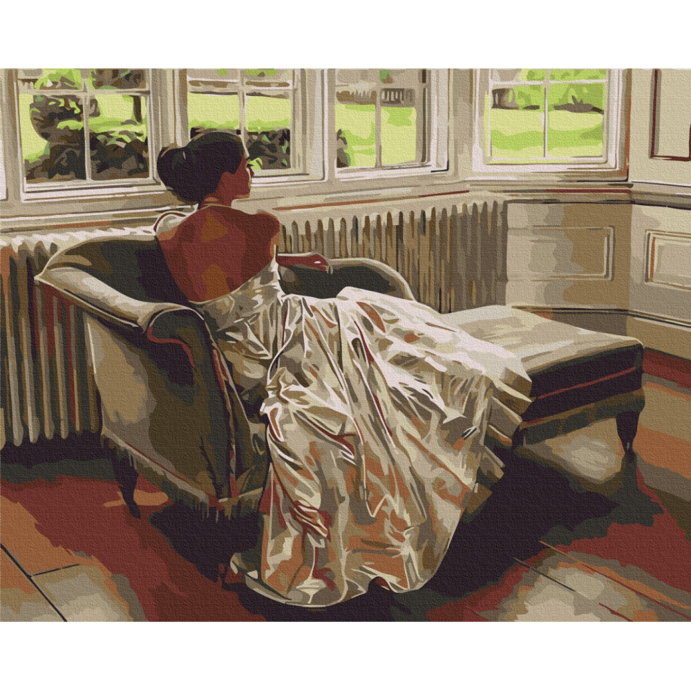 бполотно на лляній основі та дерев'яному підрамнику з нанесеною пронумерованою схемою майбутньої картини. Всі сегменти додатково пофарбовані в тон кольорів, якими буде зафарбовувати полотно