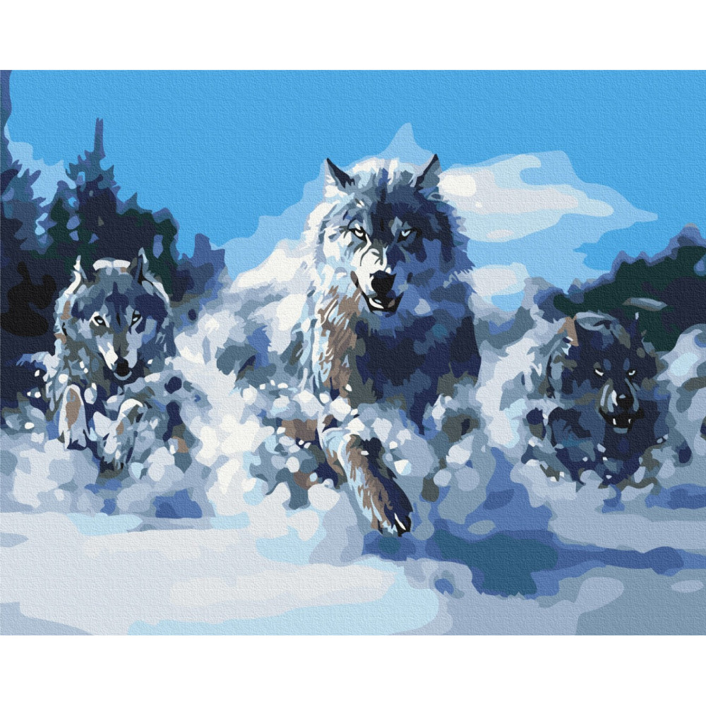 бполотно на лляній основі та дерев'яному підрамнику з нанесеною пронумерованою схемою майбутньої картини. Всі сегменти додатково пофарбовані в тон кольорів, якими буде зафарбовувати полотно
