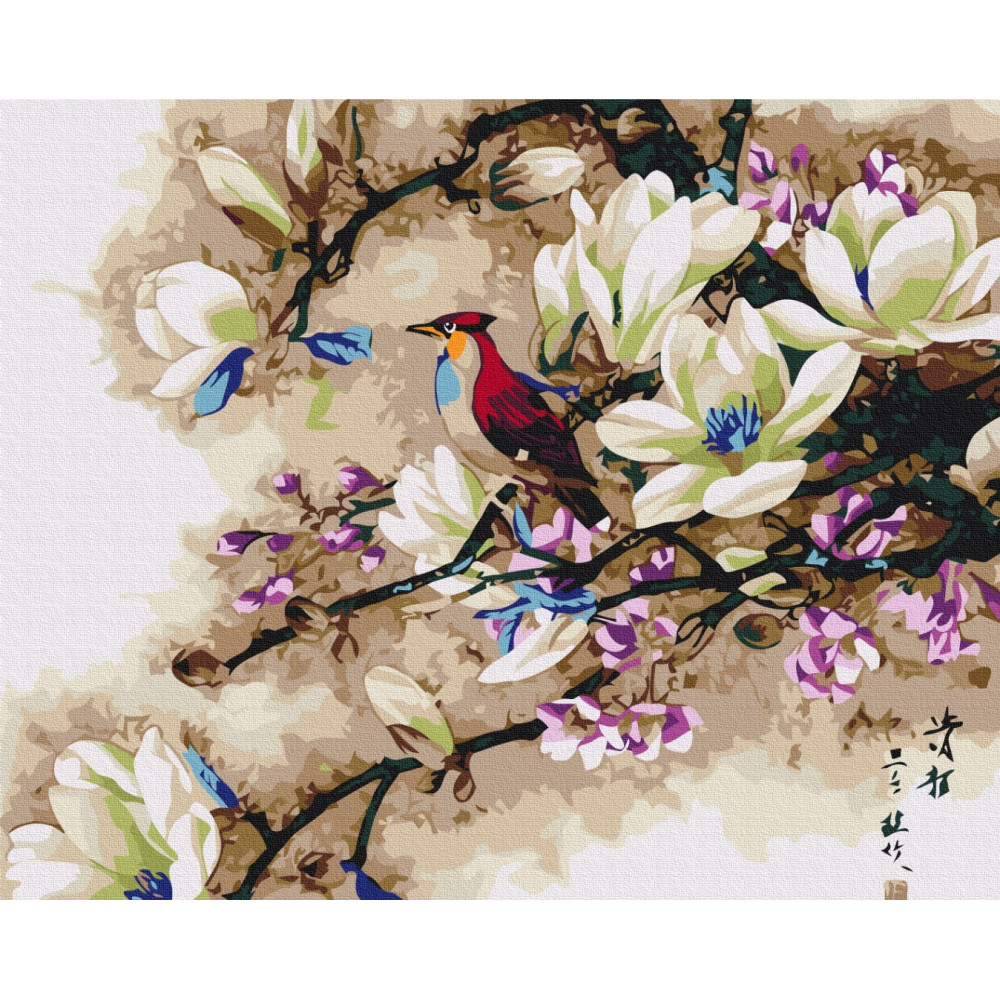бполотно на лляній основі та дерев'яному підрамнику з нанесеною пронумерованою схемою майбутньої картини. Всі сегменти додатково пофарбовані в тон кольорів, якими буде зафарбовувати полотно