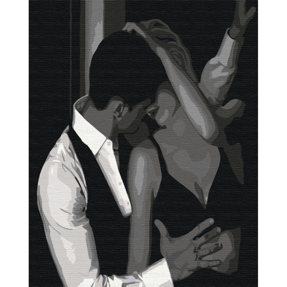 бполотно на лляній основі та дерев'яному підрамнику з нанесеною пронумерованою схемою майбутньої картини. Всі сегменти додатково пофарбовані в тон кольорів, якими буде зафарбовувати полотно