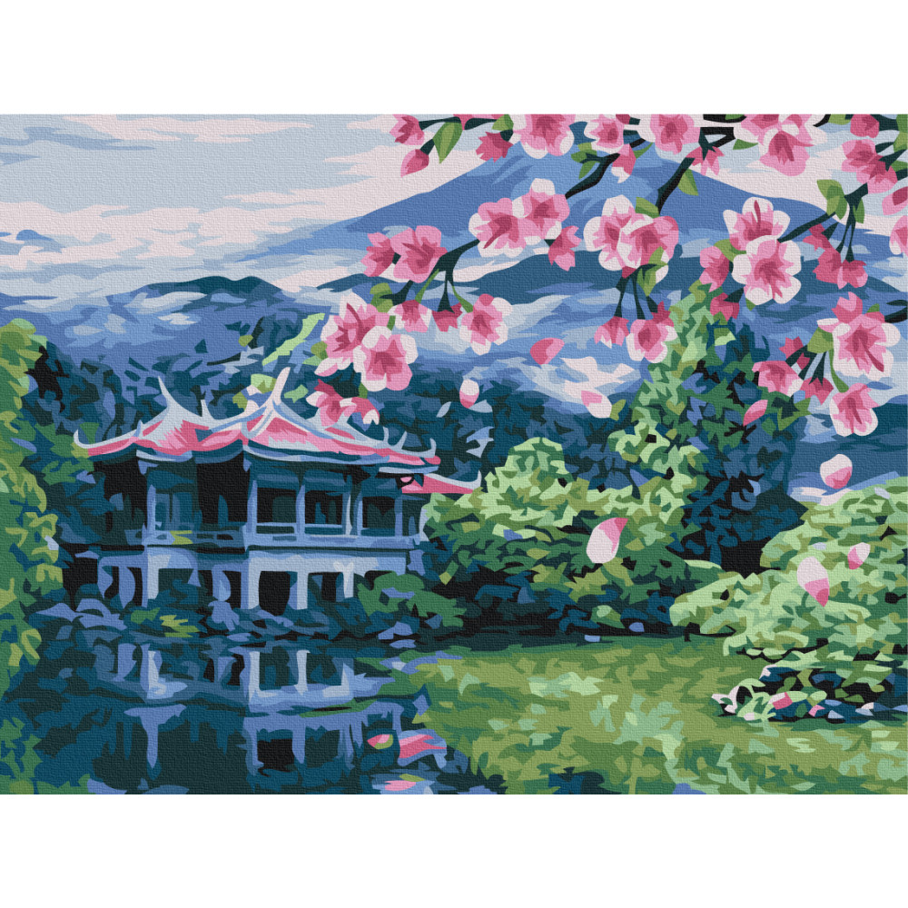 бполотно на лляній основі та дерев'яному підрамнику з нанесеною пронумерованою схемою майбутньої картини. Всі сегменти додатково пофарбовані в тон кольорів, якими буде зафарбовувати полотно
