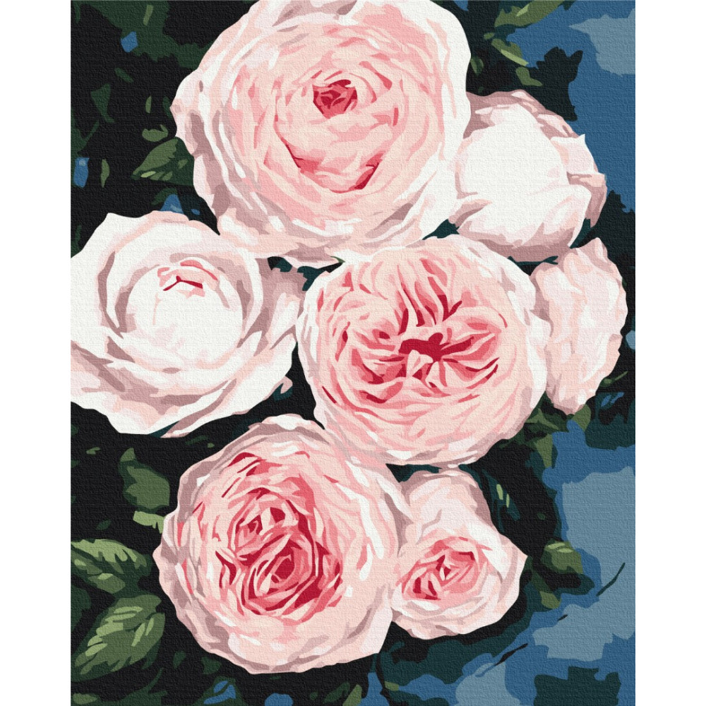 бполотно на лляній основі та дерев'яному підрамнику з нанесеною пронумерованою схемою майбутньої картини. Всі сегменти додатково пофарбовані в тон кольорів, якими буде зафарбовувати полотно
