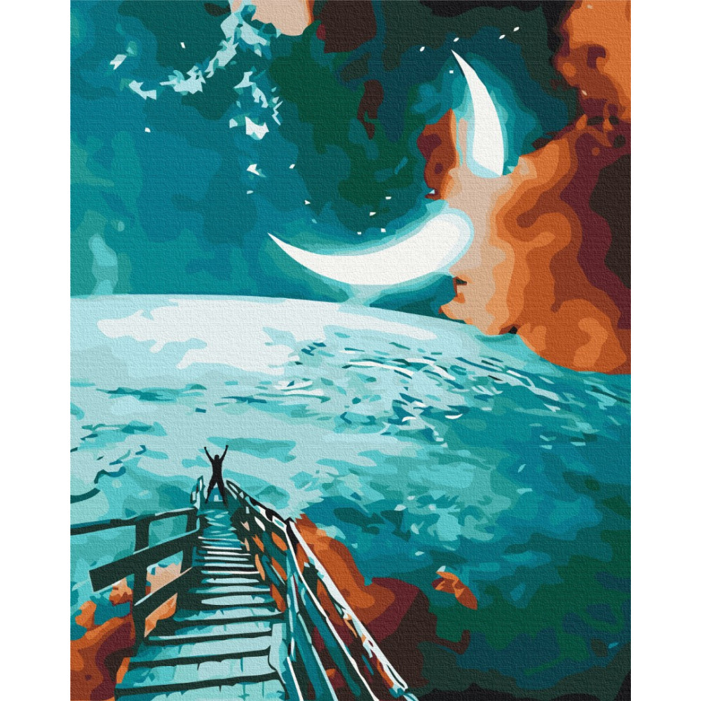 бполотно на лляній основі та дерев'яному підрамнику з нанесеною пронумерованою схемою майбутньої картини. Всі сегменти додатково пофарбовані в тон кольорів, якими буде зафарбовувати полотно