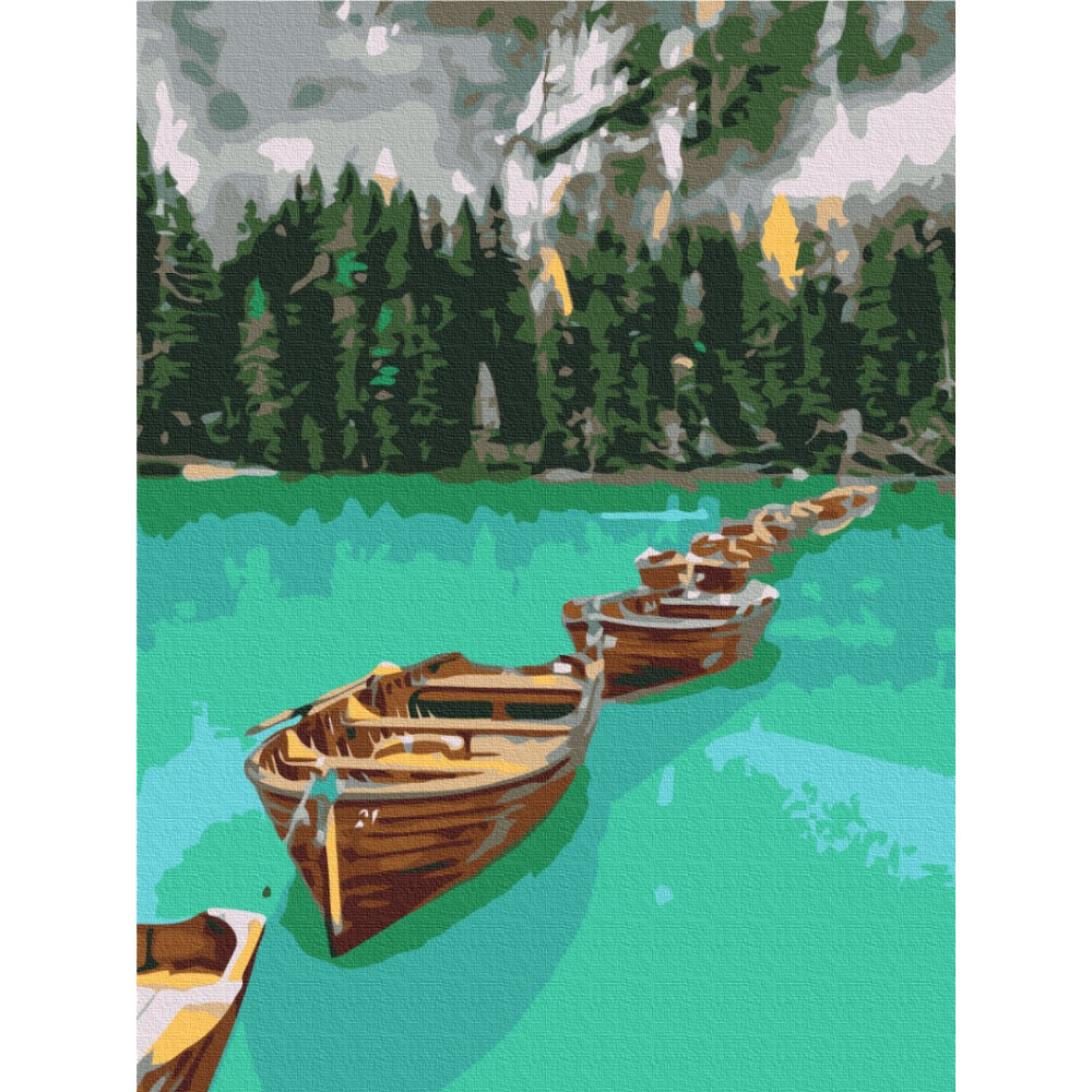 бполотно на лляній основі та дерев'яному підрамнику з нанесеною пронумерованою схемою майбутньої картини. Всі сегменти додатково пофарбовані в тон кольорів, якими буде зафарбовувати полотно