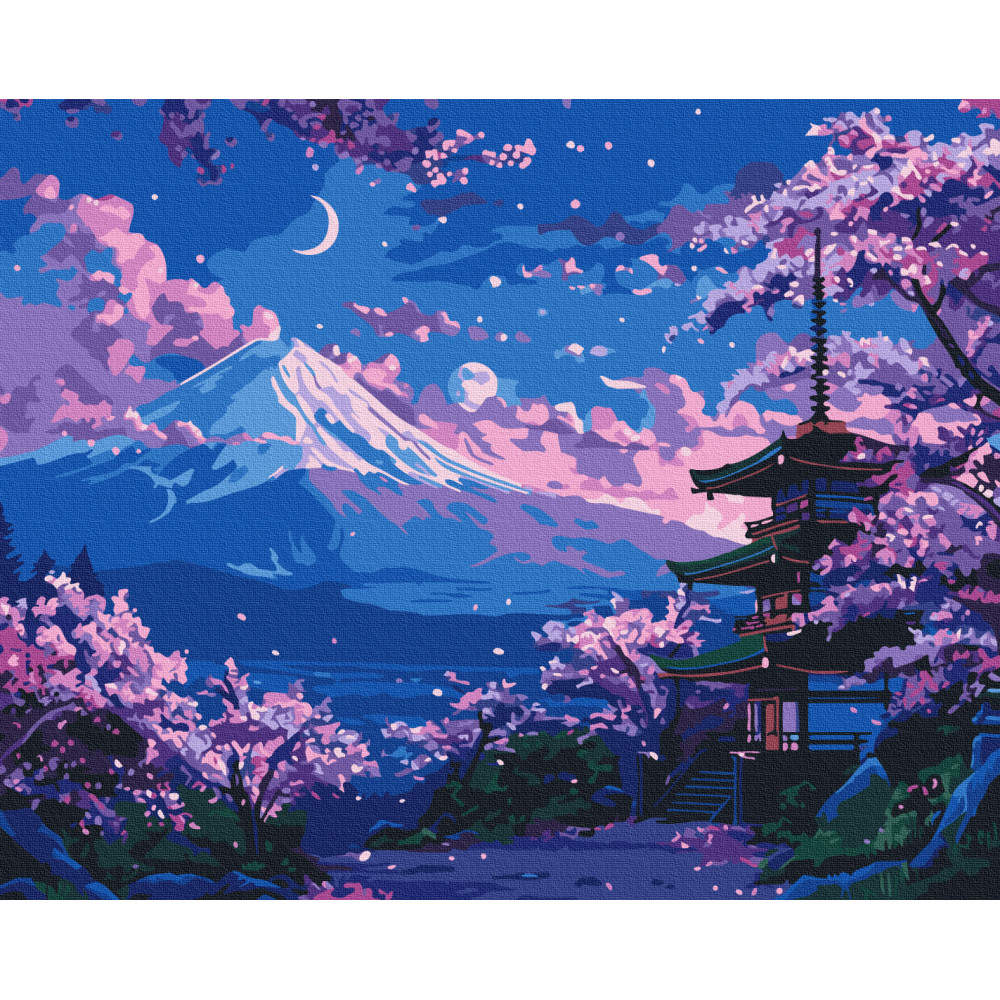 бполотно на лляній основі та дерев'яному підрамнику з нанесеною пронумерованою схемою майбутньої картини. Всі сегменти додатково пофарбовані в тон кольорів, якими буде зафарбовувати полотно