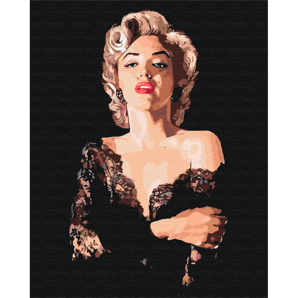 бполотно на лляній основі та дерев'яному підрамнику з нанесеною пронумерованою схемою майбутньої картини. Всі сегменти додатково пофарбовані в тон кольорів, якими буде зафарбовувати полотно