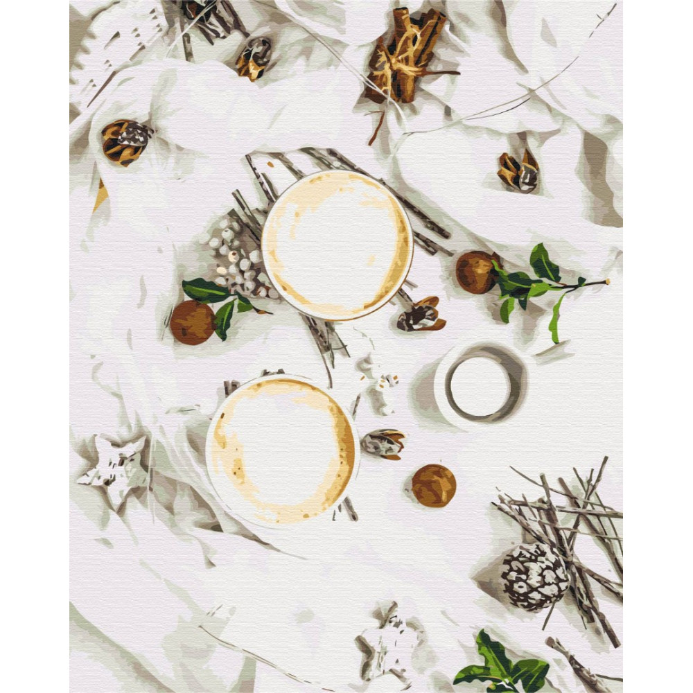 бполотно на лляній основі та дерев'яному підрамнику з нанесеною пронумерованою схемою майбутньої картини. Всі сегменти додатково пофарбовані в тон кольорів, якими буде зафарбовувати полотно