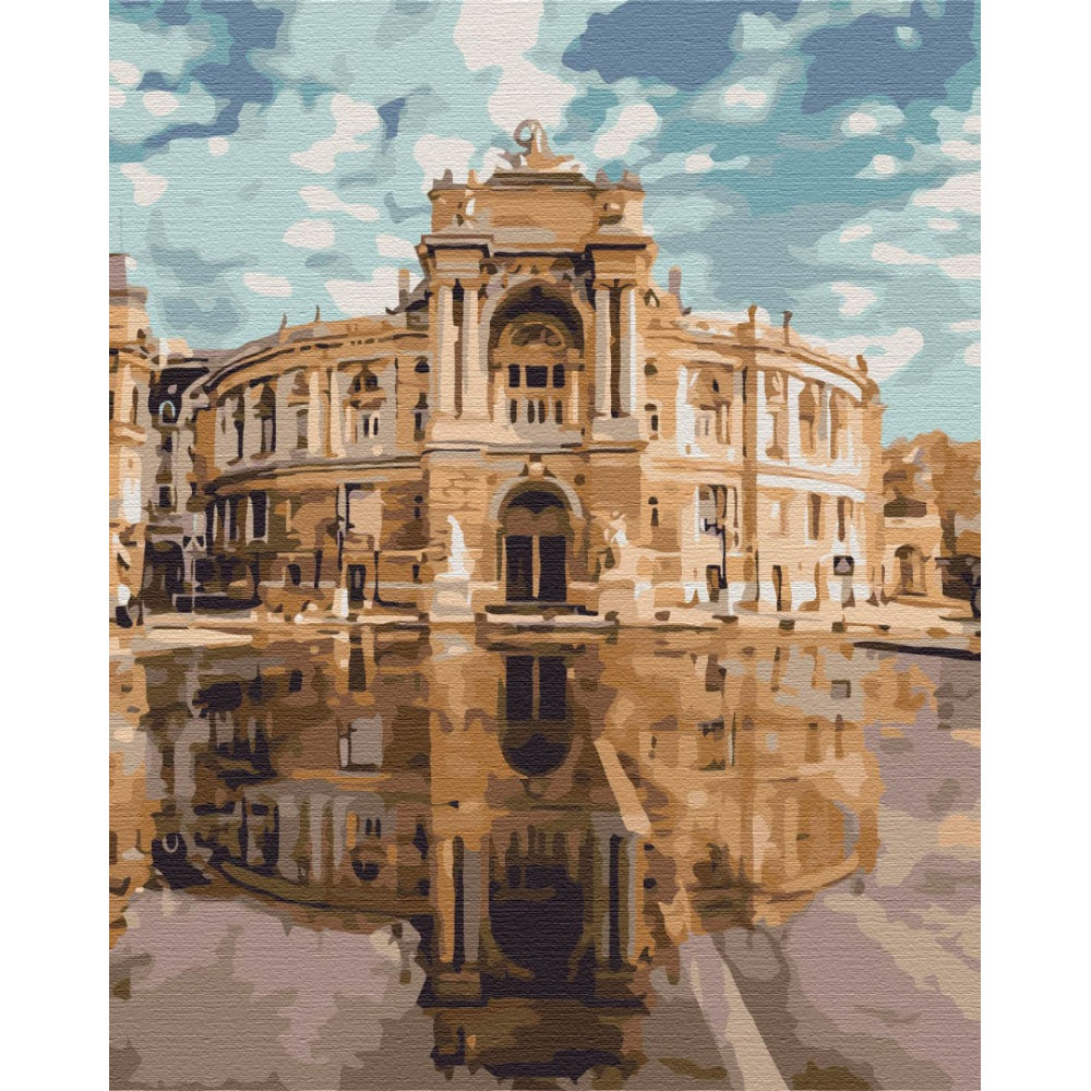 бполотно на лляній основі та дерев'яному підрамнику з нанесеною пронумерованою схемою майбутньої картини. Всі сегменти додатково пофарбовані в тон кольорів, якими буде зафарбовувати полотно