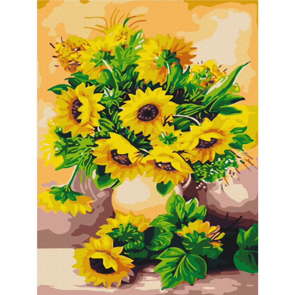 бполотно на лляній основі та дерев'яному підрамнику з нанесеною пронумерованою схемою майбутньої картини. Всі сегменти додатково пофарбовані в тон кольорів, якими буде зафарбовувати полотно