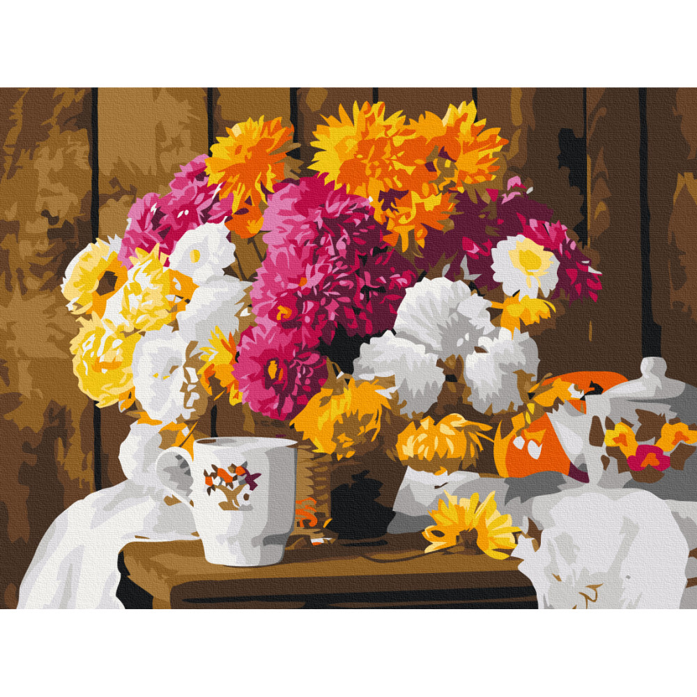 бполотно на лляній основі та дерев'яному підрамнику з нанесеною пронумерованою схемою майбутньої картини. Всі сегменти додатково пофарбовані в тон кольорів, якими буде зафарбовувати полотно
