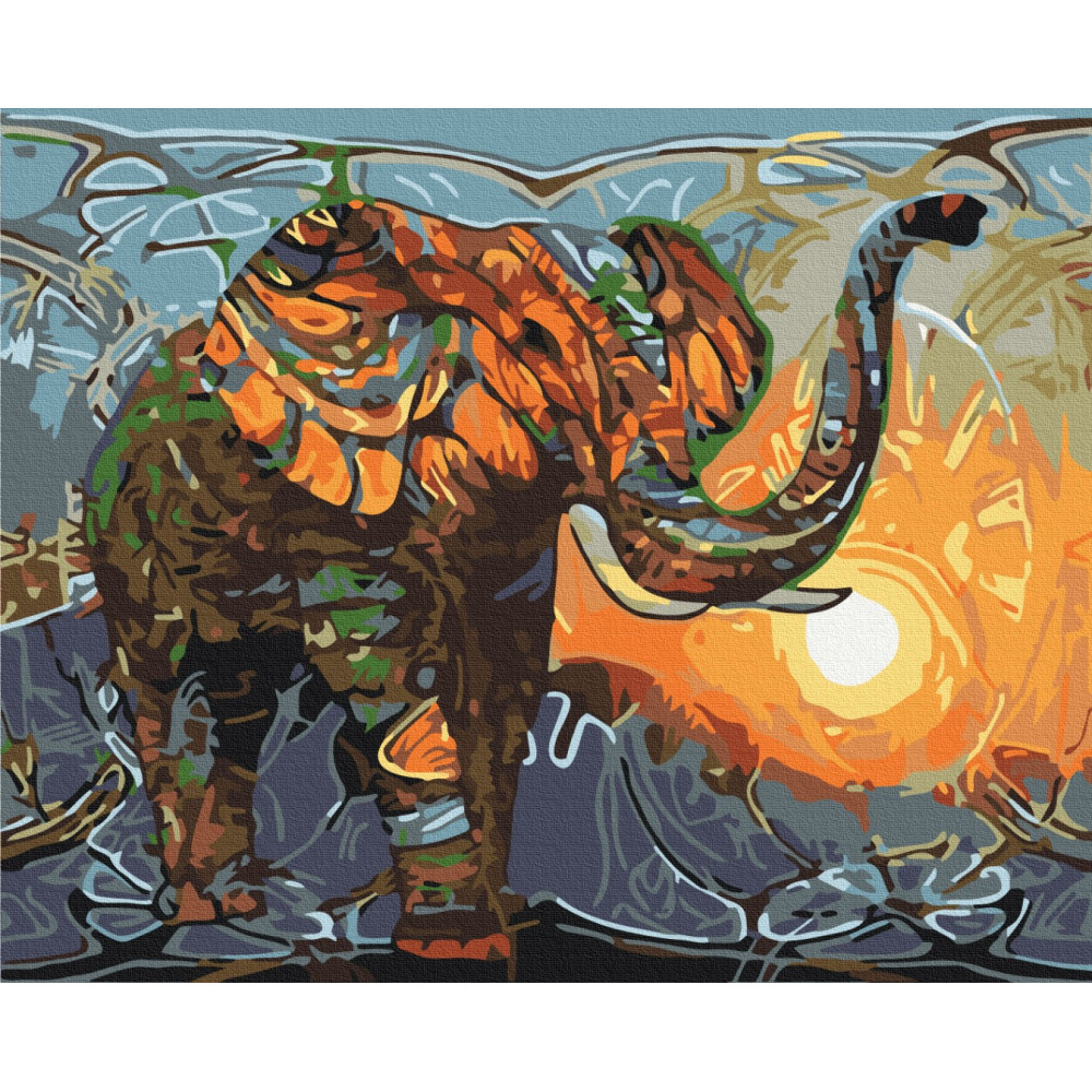 бполотно на лляній основі та дерев'яному підрамнику з нанесеною пронумерованою схемою майбутньої картини. Всі сегменти додатково пофарбовані в тон кольорів, якими буде зафарбовувати полотно