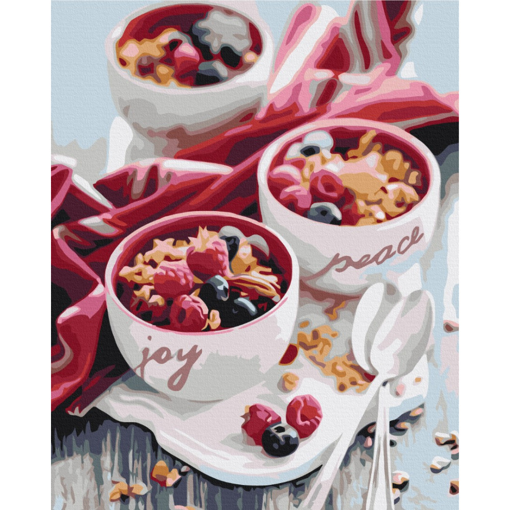 бполотно на лляній основі та дерев'яному підрамнику з нанесеною пронумерованою схемою майбутньої картини. Всі сегменти додатково пофарбовані в тон кольорів, якими буде зафарбовувати полотно