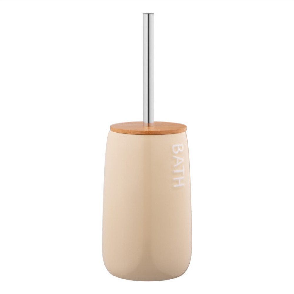 Набір ARDESTO Prestigio – щітка для унітазу з підставкою, у якому поєднано функціональність і стиль. Виготовлений із нержавіючої сталі, бамбука та доломіту, набір міцний і довговічний. Бежева підставка додає тепла інтер’єру, а чорна щітка створює стильний контраст. Завдяки розміру 12,2 × 35,2 см набір легко розмістити навіть у компактному санвузлі.