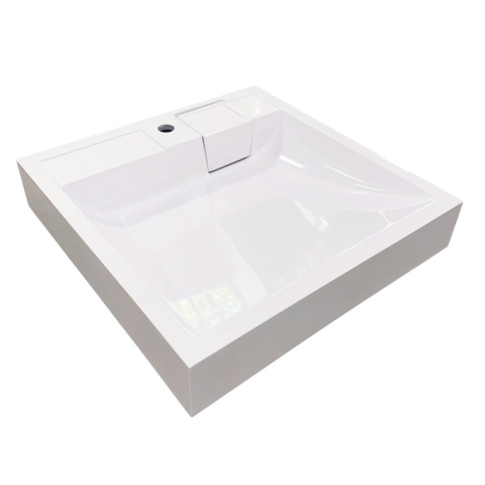 Умивальник Adamant Washer New прямокутної форми з білого штучного каменю формує практичне рішення для ванних приміщень. Розмір 595×595×115 мм з отвором для змішувача дозволяє легко інтегрувати змішувач без переливу. Накладний спосіб монтажу на тумбу з комплектом кріплень забезпечує стабільне розміщення.