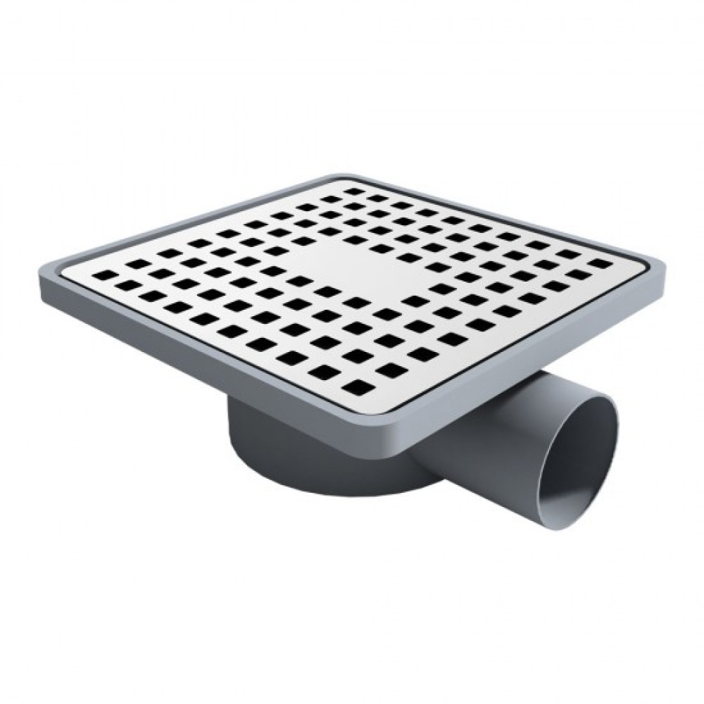 TM213-TILLO Трап пласт., решітка нерж.150х150, горизонт. DN 50,сухий затвір(поворотній), Туреччина