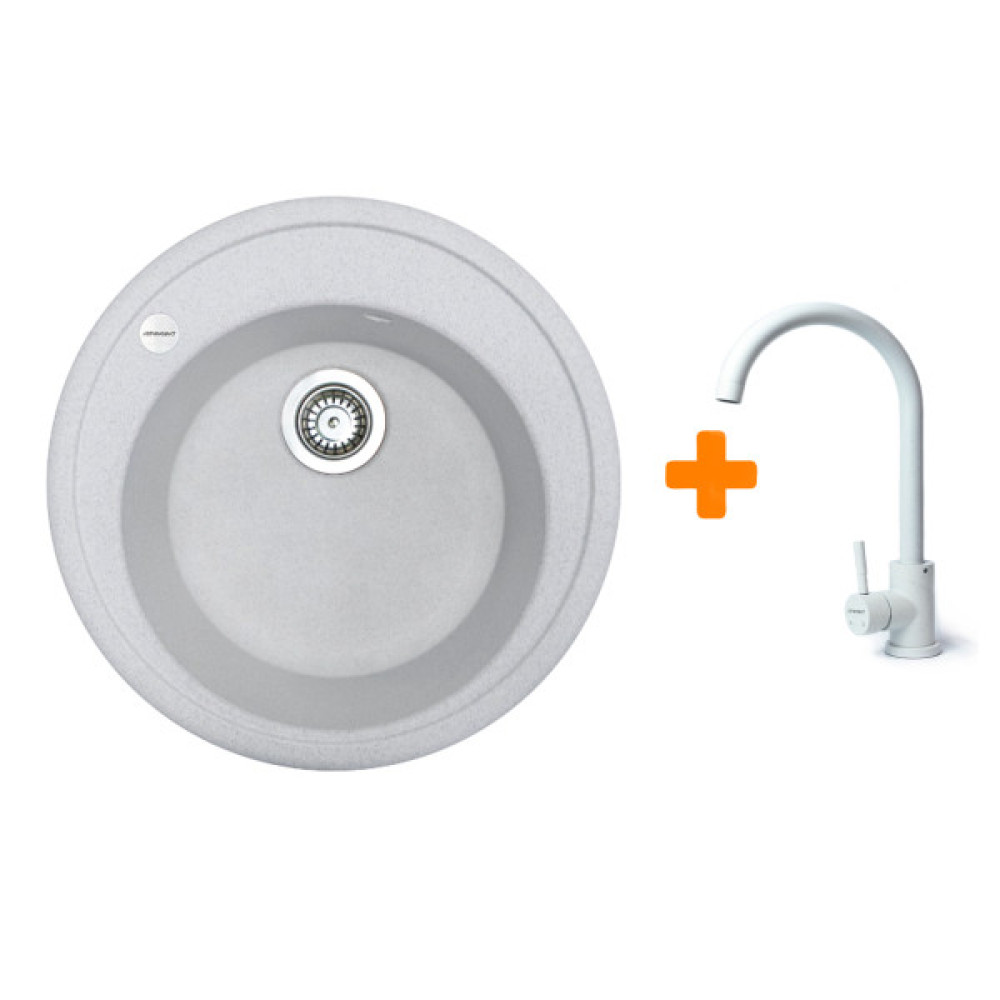 Кухонний набір ADAMANT SUN виготовлений зі штучного каменю за технологією Solid Surface, що поєднує міцність і зносостійкість. Кругла форма та врізний спосіб монтажу дозволяють встановлювати мийку в різні поверхні стільниць. Матеріал відзначається однорідною структурою, яка не вбирає рідину та запобігає появі забруднень. У комплект входить змішувач зі зручним важелем та можливістю повороту для комфортного користування. Набір створений для тривалого використання й органічно доповнює сучасний кухонний простір.