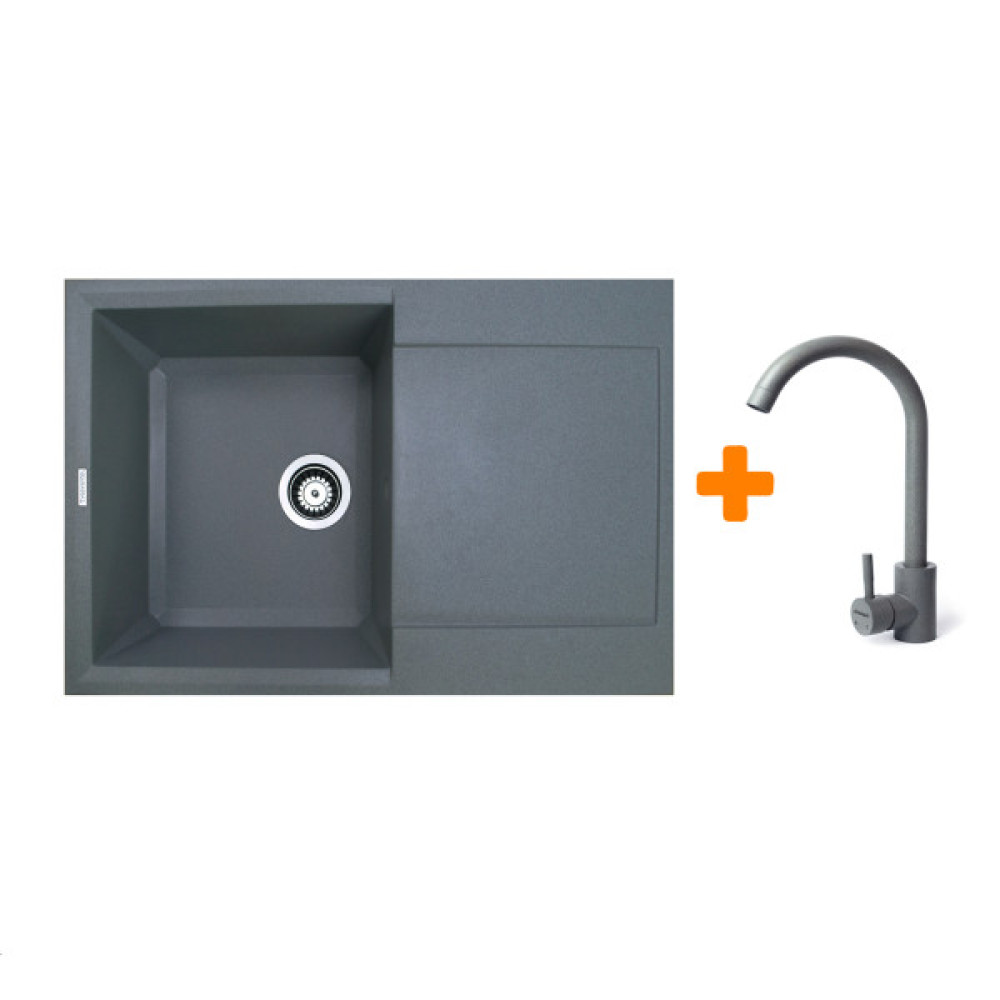 Теги: Набір, кухонний, Adamant, Horizon, штучний, камінь, прямокут, з, крилом, 780х495х230мм, чаша, 1, врізна, сірий, змішувач