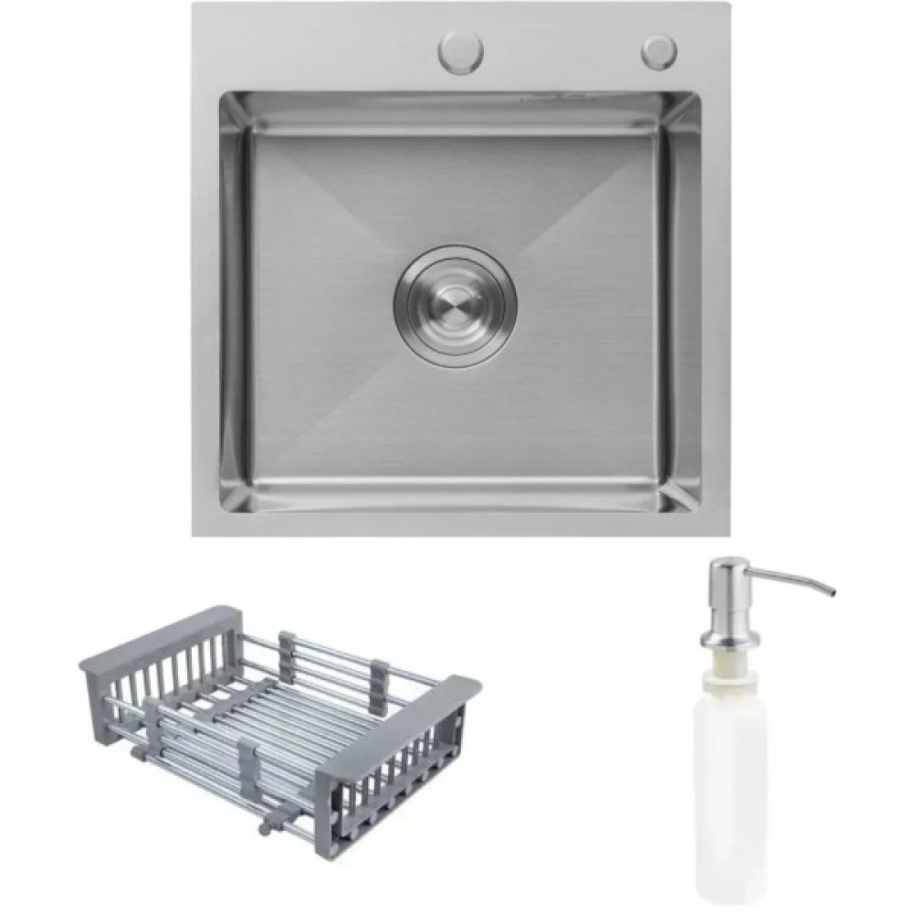 Кухонна мийка Kroner KRP Gebürstet - 5050HM - ідеальний вибір для вашої кухні! Ця квадратна мийка з інтегрованим монтажем легко впишеться в будь-який інтер'єр. Виготовлена з високоякісної нержавіючої сталі, забезпечуючи довгий термін служби. Практичний додаток - вбудований отвір для дозатора миючого засобу. З мийкою від Kroner ви отримуєте не тільки функціональний товар, але й стильний аксесуар, який зробить вашу кухню ще зручнішою і привабливішою.