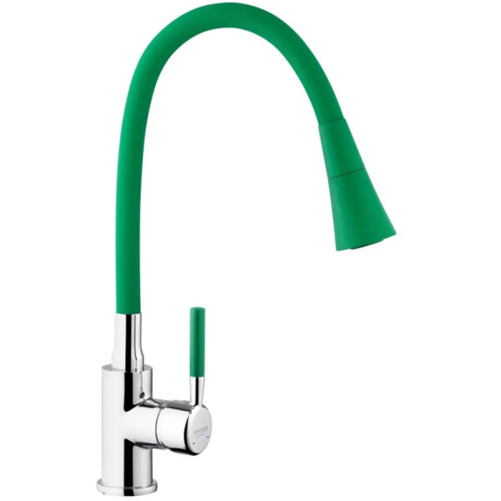 Змішувач для кухні Kroner KRM Kuche - C132GRN - це стильний та функціональний варіант для вашої кухні. Виготовлений з високоякісного силуміну з силіконовим виливом, він поєднує міцність і зручність в експлуатації. Одноважільне керування дозволяє легко регулювати температуру і потік води.