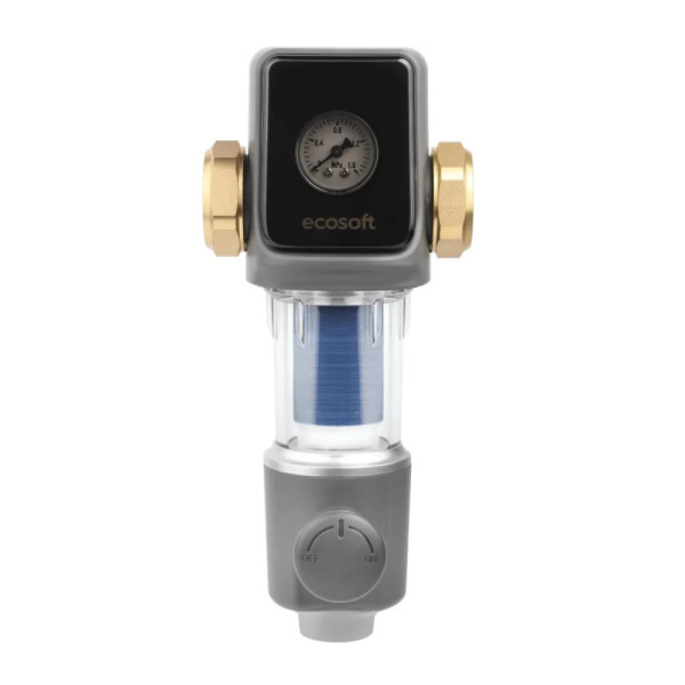 Вбудований манометр забезпечує контроль тиску під час роботи. Підключення через різьбу 1" G із адаптерами 3/4" забезпечує сумісність із різними системами водопостачання. Окремий вихід 3/8" використовується для організації промивання.