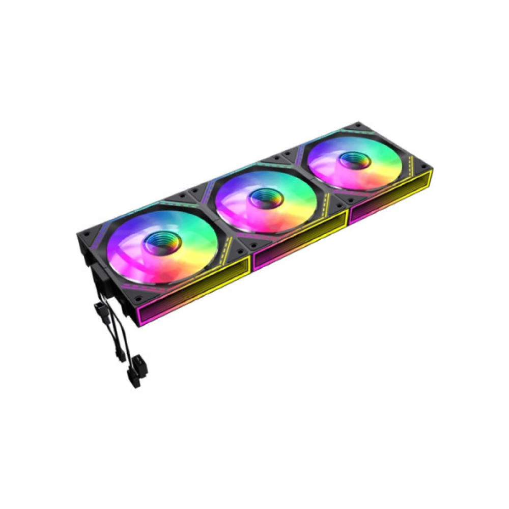 - Три повнофункціональні вентилятори 120 мм ARGB PWM. Інтелектуальна температура контролює швидкість на рівні 800~1600±10% обертів за хвилину, підключаючись до 4-контактного роз’єму PWM на материнській платі, тому швидкість вентилятора автоматично контролюється та забезпечує тиху роботу вентиляторів.