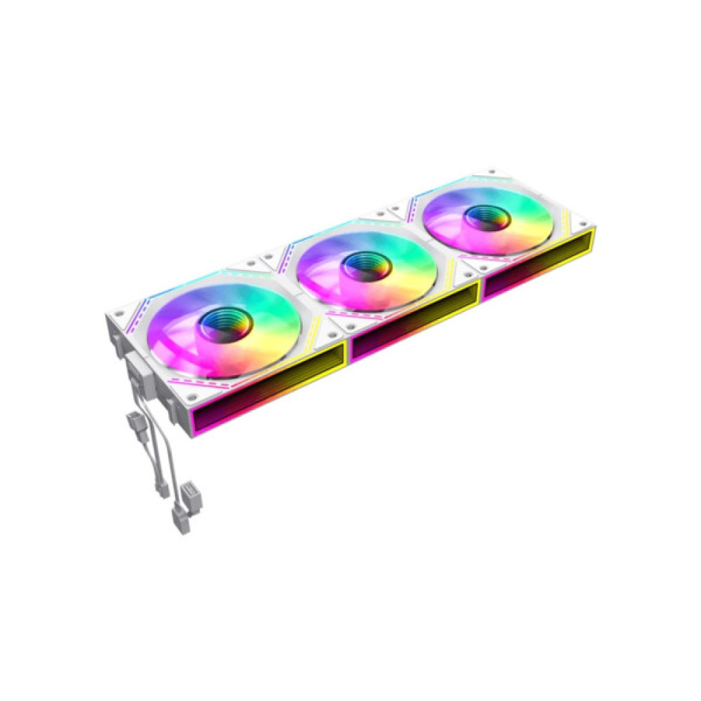 • Три повнофункціональні вентилятори 120 мм ARGB PWM. Інтелектуальна температура контролює швидкість на рівні 800~1600±10% обертів за хвилину, підключаючись до 4-контактного роз’єму PWM на материнській платі, тому швидкість вентилятора автоматично контролюється та забезпечує тиху роботу вентиляторів.