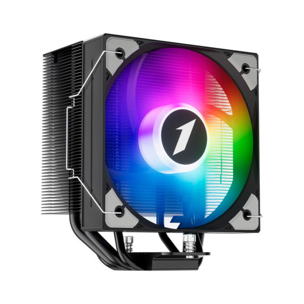 Кулер має 130-мм вентилятор із гідравлічним підшипником, який працює на швидкості 1600 об/хв, забезпечуючи повітряний потік до 78 CFM і рівень шуму до 32.3 дБ. Вентилятор оснащений ARGB-підсвічуванням із керуванням через 4-контактний роз’єм, що додає естетичності системі.