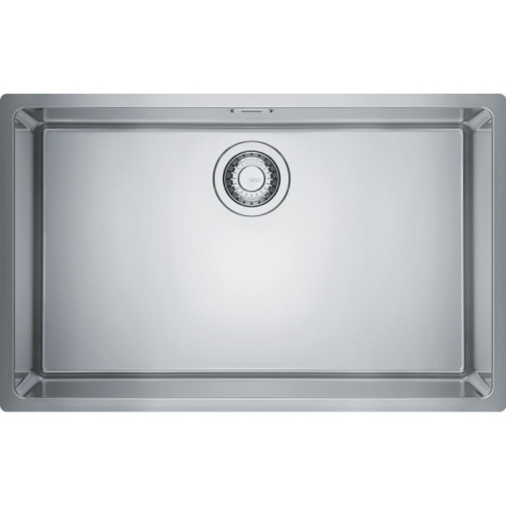Мийка Franke Maris MRX 110-70 виготовлена з нержавіючої сталі AISI 304 та має конструкцію без крила, що формує лаконічний вигляд робочої зони. Монтаж під стільницю усуває бортики та зменшує кількість місць, де накопичується забруднення. Чаша великого розміру створює комфорт для миття духових дек, решіток та об’ємного посуду. Прихований перелив захищений декоративною кришкою, що зберігає акуратний вигляд внутрішньої частини чаші. Ручний зливний клапан працює за простою схемою без складних механізмів.