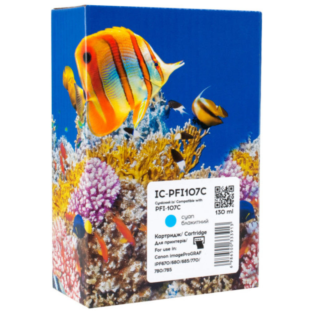 Картридж сумісний Canon PFI-107C (6706B001) 130 мл, блакитний Barva (IC-PFI107C), опис: