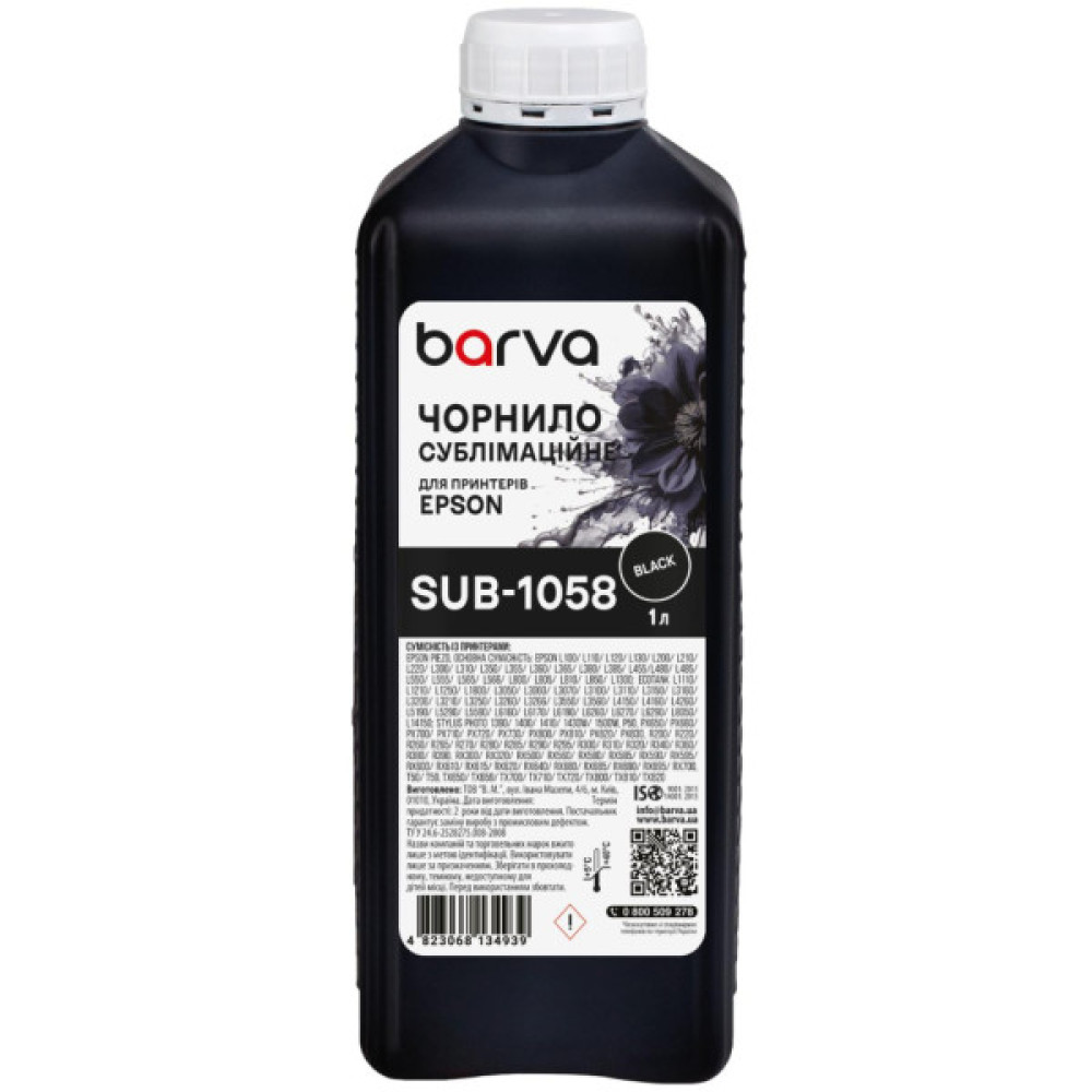 Теги: Чорнило, Barva, Epson, 1, л, sublimation, black, SUB1058