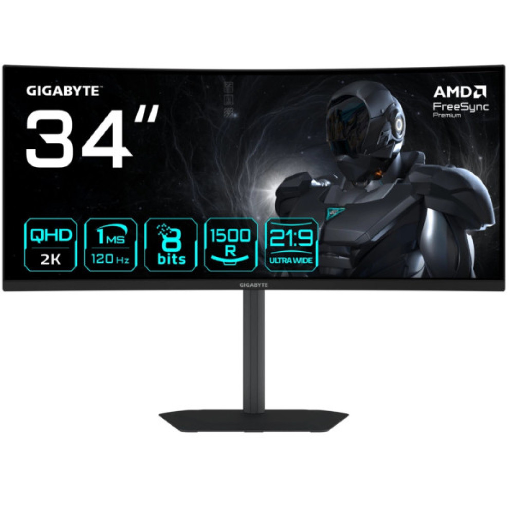 GIGABYTE GS34WQCA — це 34-дюймовий ігровий монітор із вигнутим екраном формату 21:9, який створює ефект повного занурення у віртуальний світ. Завдяки роздільній здатності 3440×1440 і співвідношенню сторін 21:9 ви отримуєте більше простору на екрані, що особливо важливо в динамічних іграх і під час роботи з кількома вікнами.