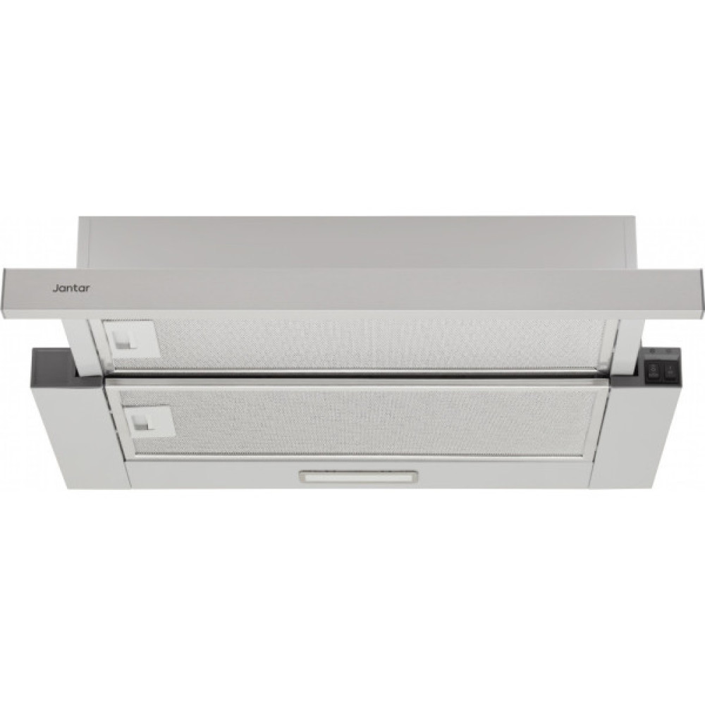Вбудована телескопічна витяжка, режим роботи відведення, продуктивність 650 куб.м/год, 2 швидкості, приховане кнопкове управління, світлодіодна лампа, алюмінієвий жировий фільтр, ширина 59.6 см.