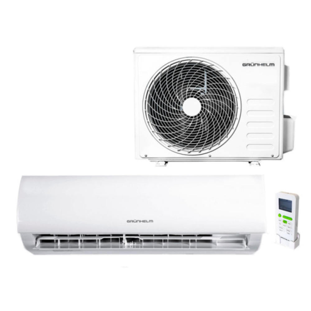 Настінний кондиціонер компанії Grunhelm - це потужний у своїй бюджетній категорії агрегат. Здійснює охолодження, обігрів, вентилятор, авто-осушення повітря. Хладогент R32 хімічна формула CH2F2. Низький рівень шуму. Економічний режим. Незалежне осушення. Таймер 24 години. Додатковий фільтер.